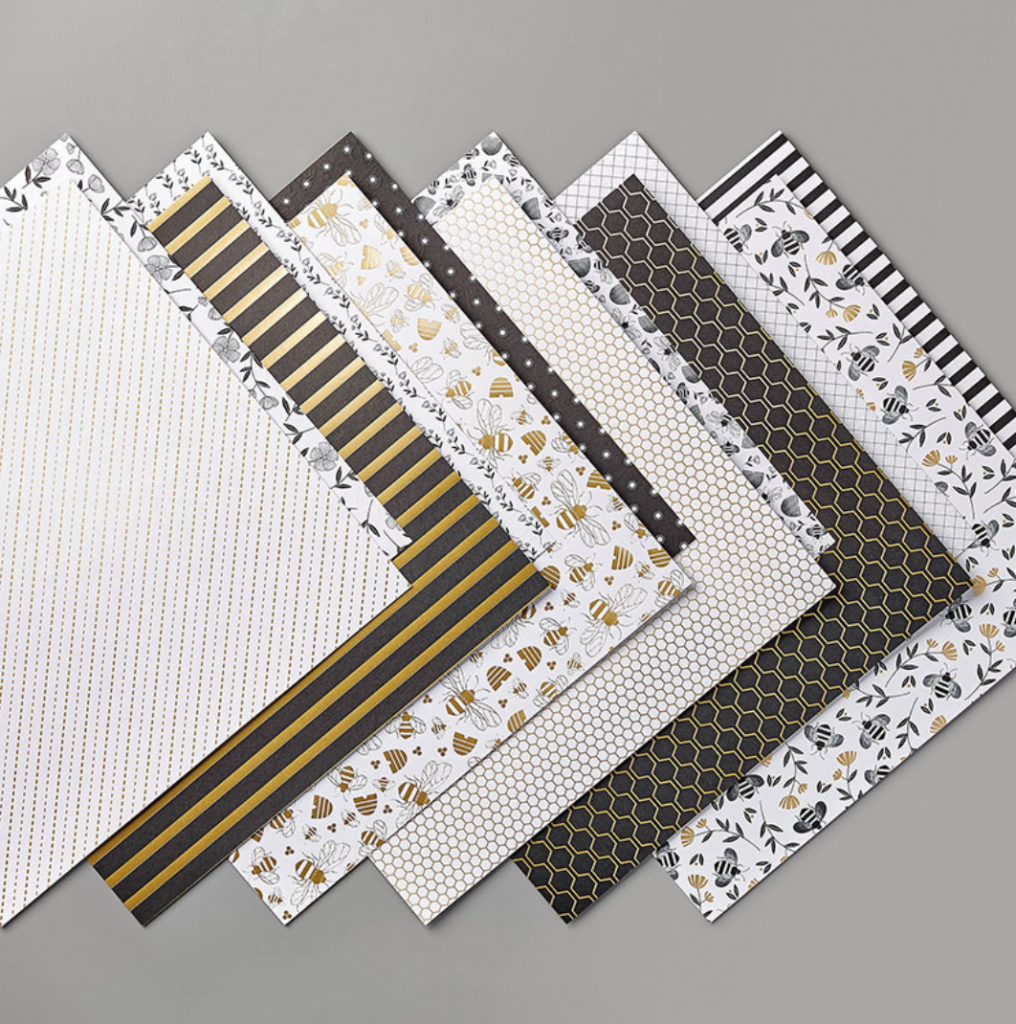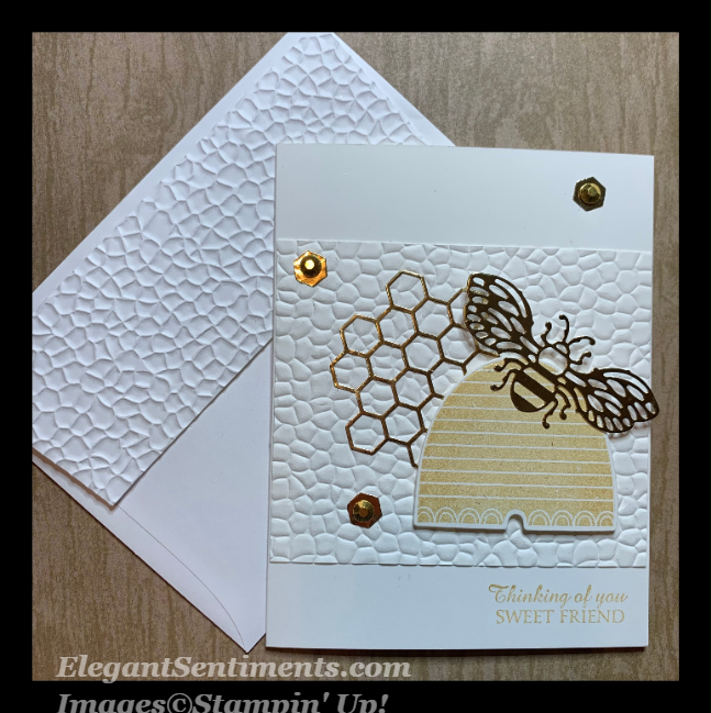 Happy Friday ya’ll! It’s hard to believe that we are beyond the middle of the month already. It seems that we were just singing Auld Lang Syne….. As the saying goes, Time Flies When You’re Having Fun. And I’ve been having a ton of fun playing with the new Honey Bee bundle and the Golden Honey Specialty Designer Series Paper.