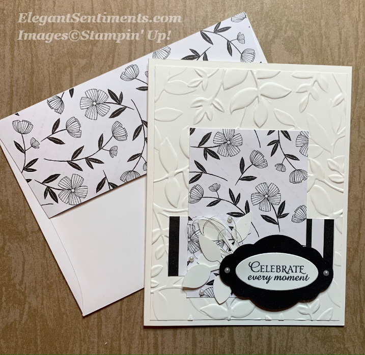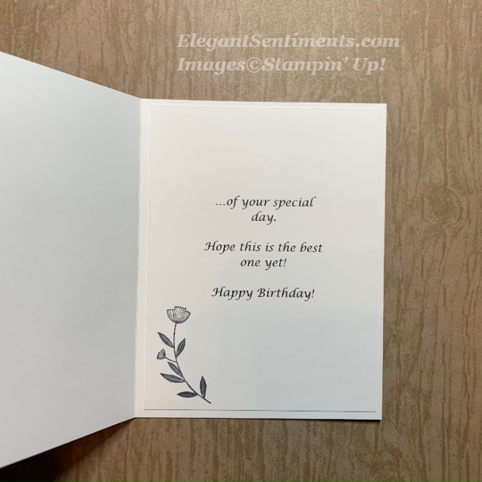 The beautiful DSP does all the work for this card. I punched the sentiment tag with our Tailored Tag punch and adhered it to the card with Stampin’ Dimensionals to add a little depth. Our retired Gold Mini Sequin trim adds just a touch of texture. While it is no longer available you can still snag the Silver Mini Sequin Trim from the Clearance Rack. If you love it, better grab it before it’s gone! This button will take you right to my shop. All Clearance Rack items are while supplies last!